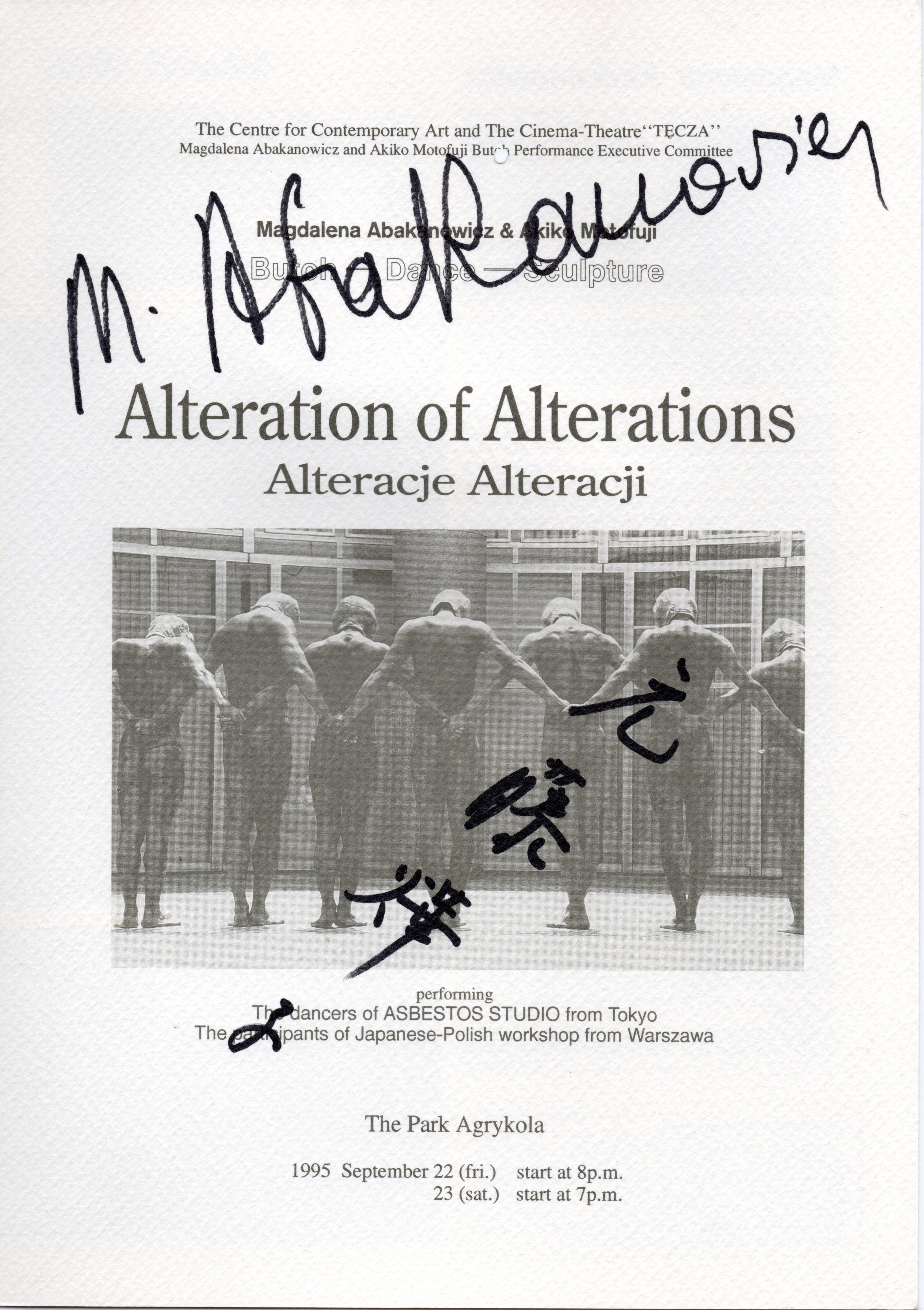 アバカノヴィッチの母国ポーランドでの「アバカノヴィッチへの手紙」の公演。本作はアバカノヴィッチと元藤燁子との共同演出の作品として発表されてきたが、ついにポーランドに招かれての上演となった。ワルシャワで開催のアバカノヴィッチ展のオープニングに合わせての野外公演で、男性舞踏手の群舞と元藤のソロのダンスに、斎藤徹のベースと2本の箏(17弦)が加わり、悲惨な歴史の地ポーランドでの鎮魂の舞踏となった。