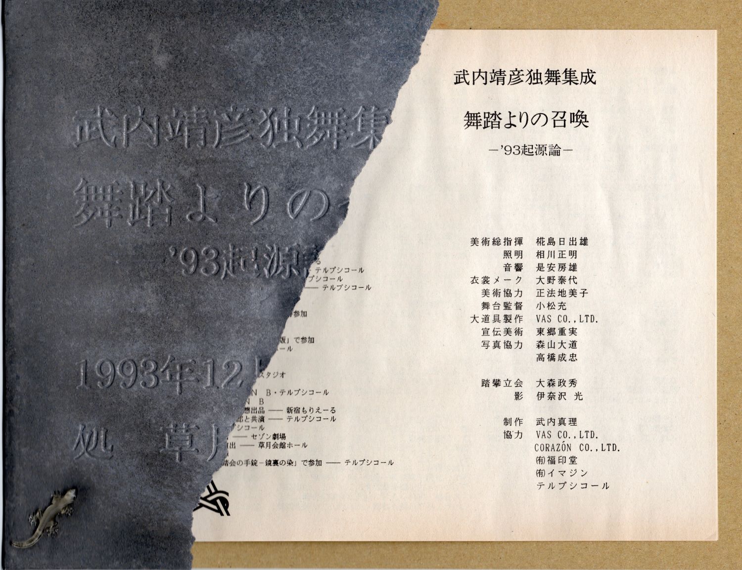 武内靖彦独舞集成・踏業22周年記念リサイタル。40周年には、同じく「舞踏よりの召喚」と銘打って記念リサイタルを開催した。