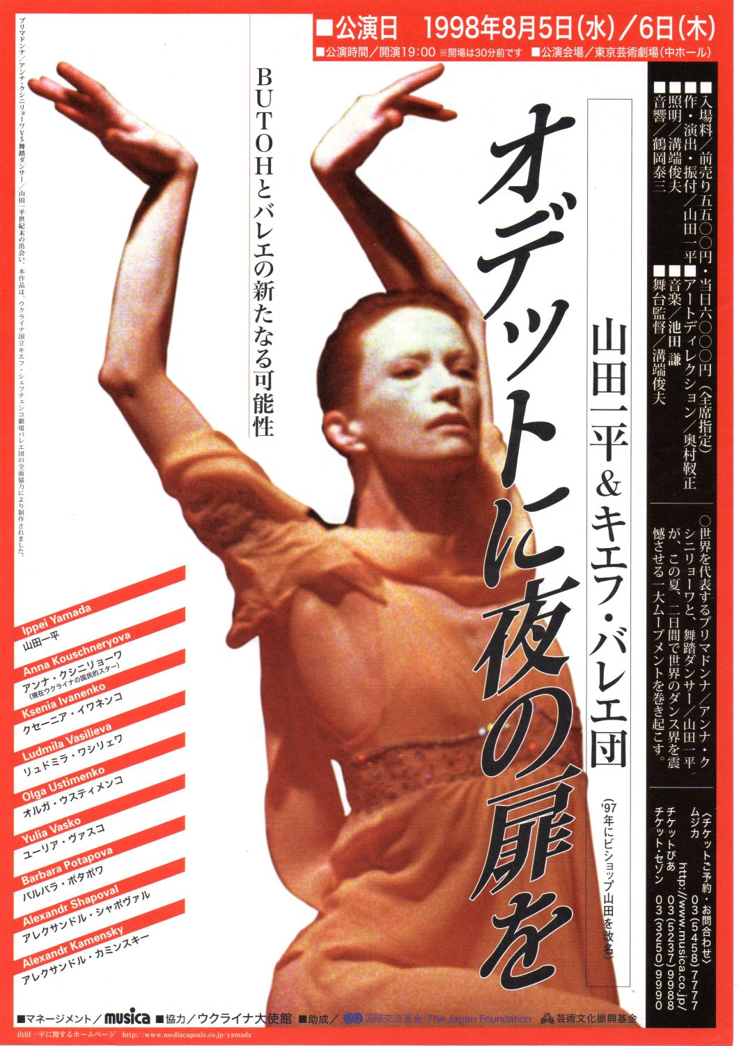 当時ウクライナの国民的スターだったアンナ・クシニリューワ等が出演し、同年8月には東京芸術劇場で同作をリメイクした「オデットに夜の扉を」がほぼ同じキャストで上演された。