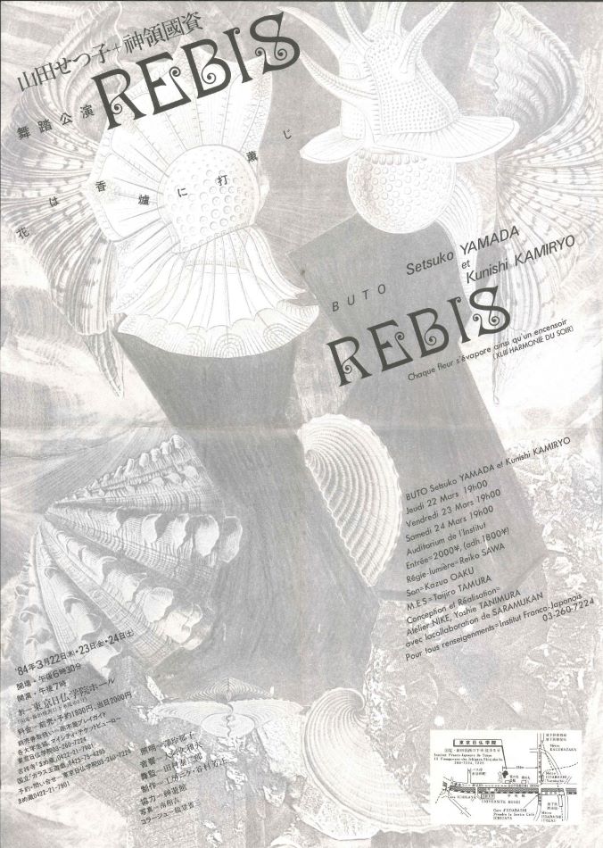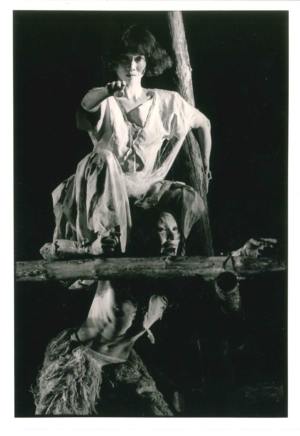 山田せつ子と神領國資のデユオ作品。丸太で組まれた櫓と堆積された泥土、置かれた石は古代の祭儀の場所のように見える。動物を模するかのような神領國資の舞踏が生贄のような山田せつ子の舞踏と交差する。
