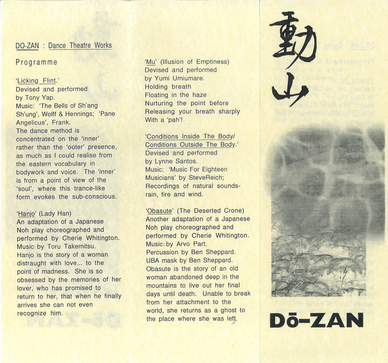 聖カルタゴ教会でのDO-ZAN参加パフォーマーは、シェリー・ウィッテントン、ジル・オー、トニー・ヤップ、ゆみ・うみうまれ。プログラム・ノートは同年11月のキャッスルメイン図書館ホールでの上演(キャッスルメイン・フェスティバル)から。