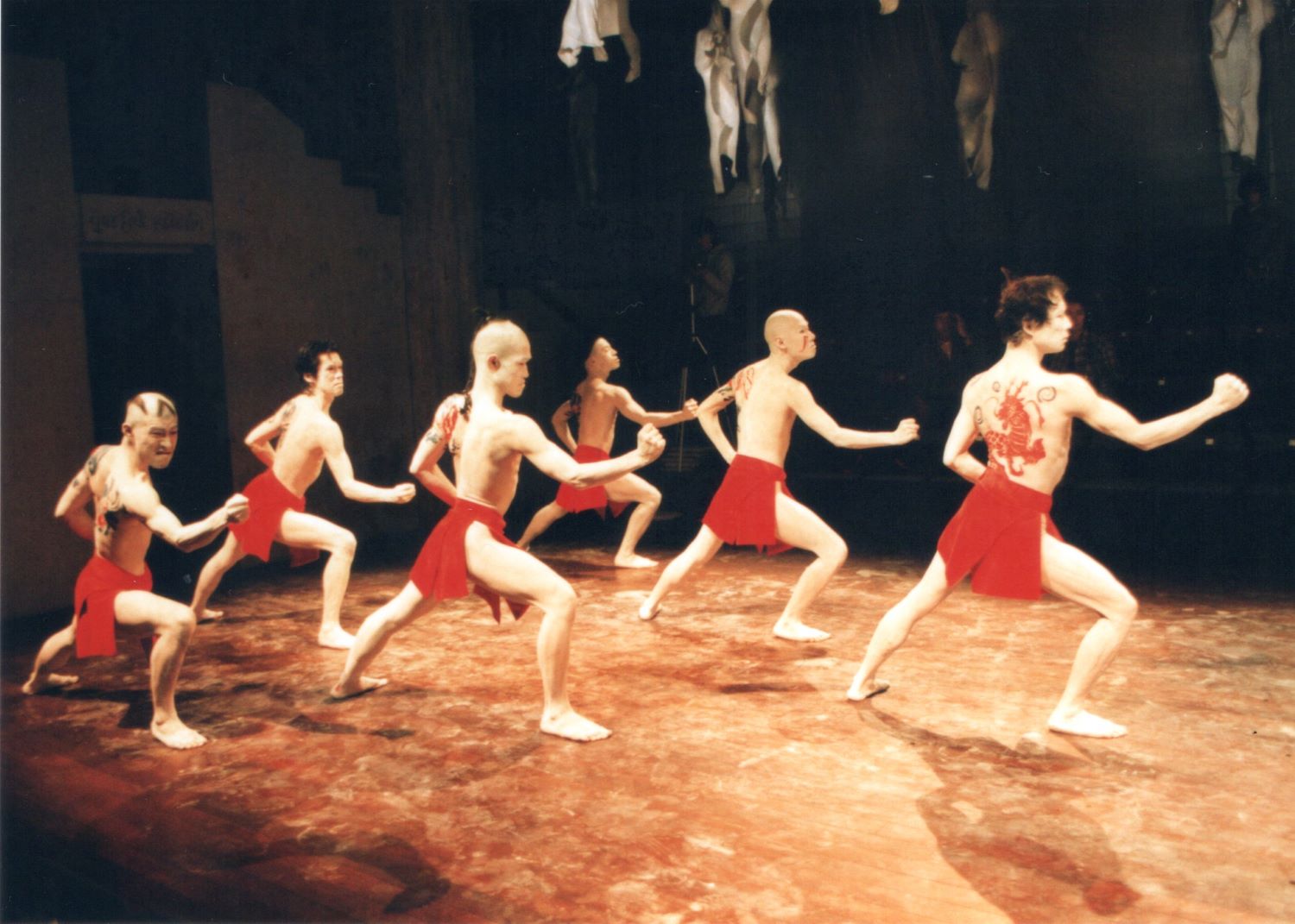 私の身体の中を流れている無頼の血は、あるときは幾筋にも分かれ、また集まり瀧となって音もなく身体の芯部へと落ちている。しかし、じっと耳を澄ますと、かすかだが遠くで太鼓を打つような音が聞こえてくる。風に乗って聞こえてくる夜祭のお囃子か?あるいは、往来の昼日中、耳の奥で唸っている海鳴りか?いや、違う。もっと古い血の記憶だ。舞踏の古代史の中には「鬼」「まれびと」「龍蛇」などが出たり入ったりしているように思う。現代の私たちの身体の奥にも彼らは棲んでいるのだろうか。われわれの身体とは不思議で変な入れ物だ。記憶という川をさかのぼり瀧壺に沈みキラキラと光る一枚のウロコを手に入れる。それを合図に水龍と火龍の戦いの火ぶたが切って落とされるのだ。そういう修羅場こそ舞踏奴の独壇場である。男伊達、そこのけそこのけ奴が通る。美女の恋に翻弄された鳴神上人も瀧を登って龍となる。新しい祭のはじまりだ。